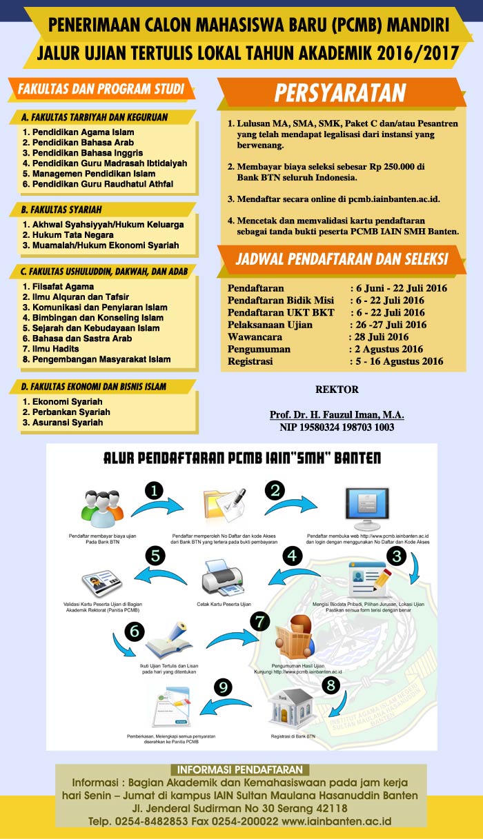 Penerimaan Calon Mahasiswa Baru (PCMB) Mandiri IAIN SMH Banten TA 2016/2017