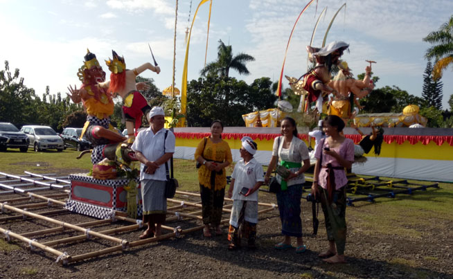 Setelah ritual sedekah bumi, selanjutnya, umat akan melakukan pawai Ogoh-ogoh atau boneka besar. Ada sekitar delapan boneka dengan berbagai ukuran besar yang siap dipapah.  “Pawainya nanti sekitar jam setengah dua,” ungkapnya.