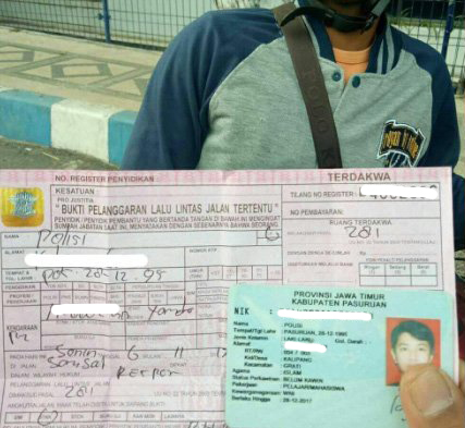 Identitas nama pemuda itu terungkap setelah berkas tilang diunggah di media sosial oleh petugas kepolisian Polres Pasuruan.