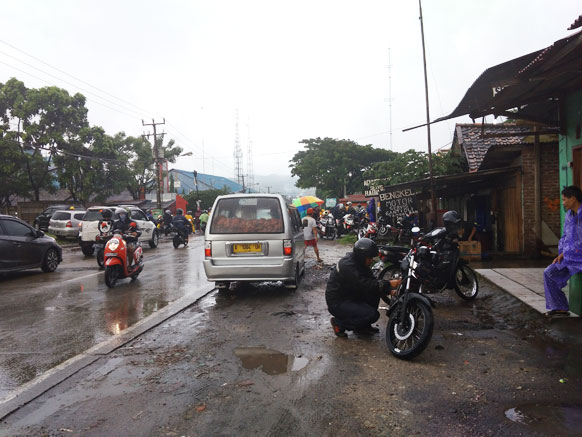 Tak banyak kendaraan roda dua yang berani melintas. Hanya beberapa, itu pun bukan dari jenis motor bebek. Mobil truk dan kendaraan roda empat masih terlihat lalu lalang, namun bukan jenis mobil sedan.