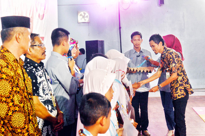 Korwil Dindikbud Kecamatan Cimanggu M Qodri Arroyan mengalungkan medali kepada finalis