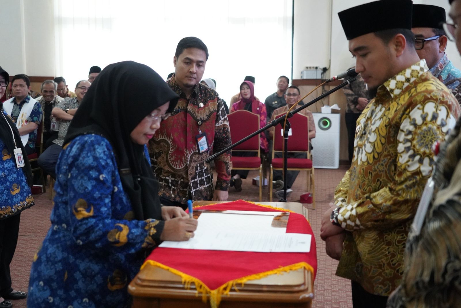 CILEGON,RADARBANTEN.CO.ID – Pemerintah Kota Cilegon menggelar kegiatan Pelantikan dan Pengambilan Sumpah/Janji Jabatan Pimpinan Tinggi Pratama serta Jabatan Fungsional di Lingkungan Pemerintah Kota Cilegon yang berlangsung di Aula Setda Kota Cilegon, Jumat (24/04).